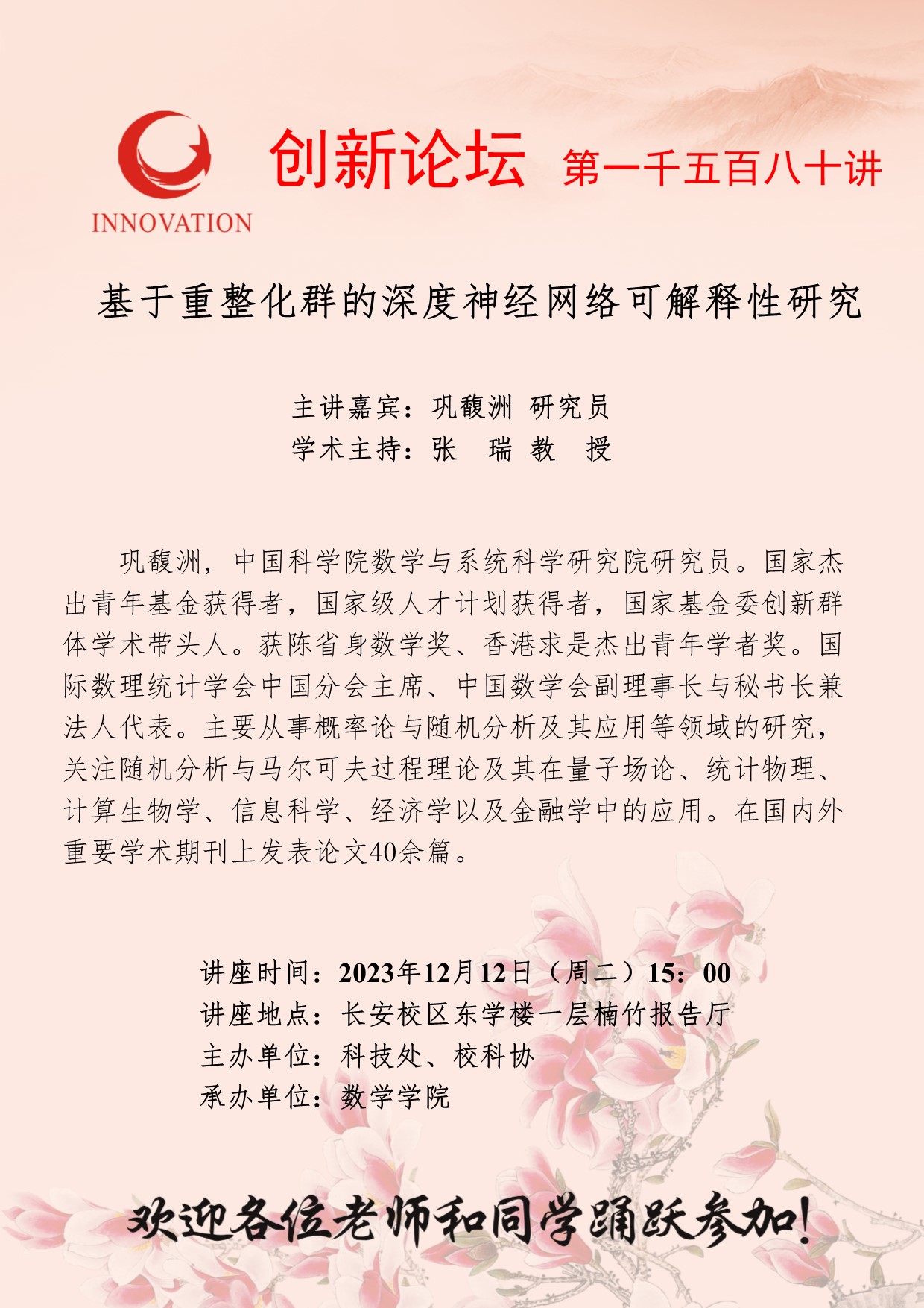 巩馥洲 研究员 安博·(中国)体育官方网站创新论坛第一千五百八十讲:基于重整化群的深度神经网络可解释性研究 讲座时间 2023年12月12日(周二)15:00 讲座地点 长安校区东学楼一层楠竹报告厅 讲座人介绍 巩馥洲 研究员 讲座内容